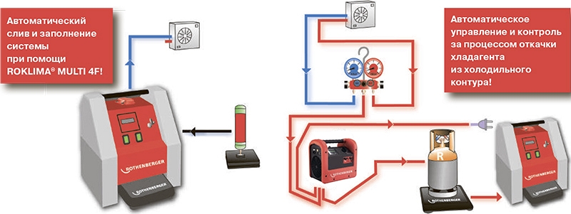 Преимущества автоматической манометрической станции для заправки кондиционеров Rothenberger Roklima Multi 4F: