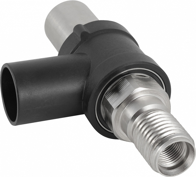 Пылеотвод для алмазной коронки Diam 1 1/4 UNC папа-1 1/4 UNC мама (Диам 1 1/4 УНЦ папа-1 1/4 УНЦ мама) предназначен для присоединения промышленного строительного пылесоса через штатный шланг, и дальнейшего алмазного сверления отверстий без использования воды.